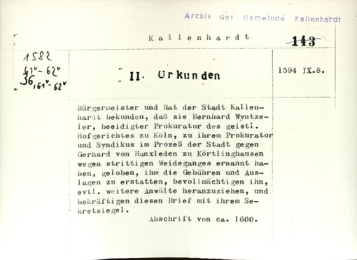 | Bestand | Kallenhardt, Stadt, Urkunden | alle Regesten |