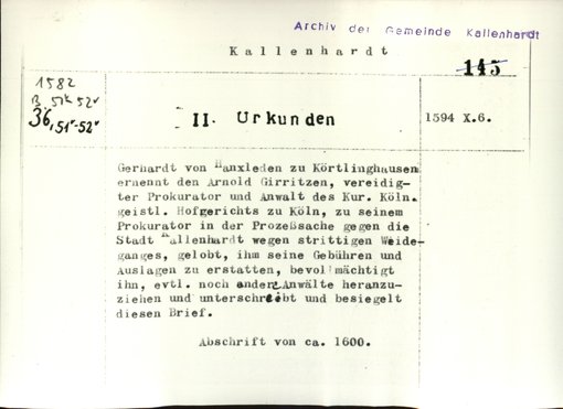 | Bestand | Kallenhardt, Stadt, Urkunden | alle Regesten |