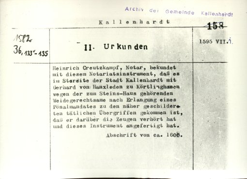 | Bestand | Kallenhardt, Stadt, Urkunden | alle Regesten |