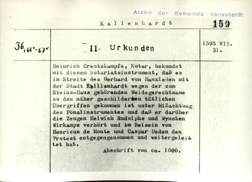 | Bestand | Kallenhardt, Stadt, Urkunden | alle Regesten |
