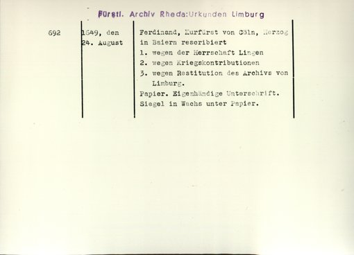 | Bestand | Limburg, Urkunden | alle Regesten |
