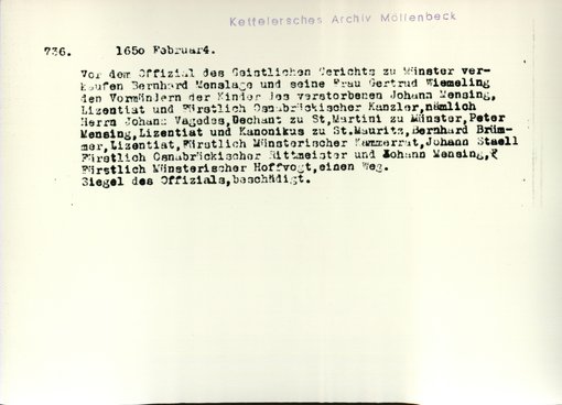 | Bestand | Möllenbeck, Haus, Urkunden | alle Regesten |