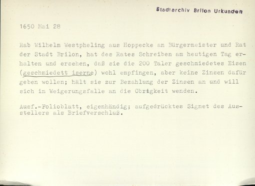 | Benutzungsort | Stadtarchiv Brilon | |||||||