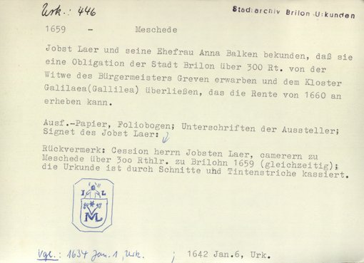 | Benutzungsort | Stadtarchiv Brilon | |||||||