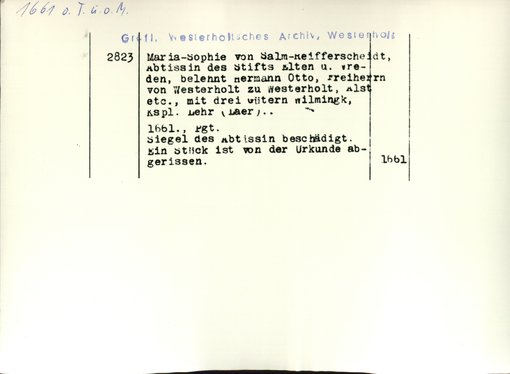 | Bestand |    Westerholt-Westerholt, Urkunden |    alle Regesten						 |
