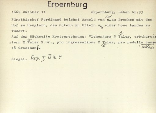 | Bestand | Lehen, Urkunden | alle Regesten |