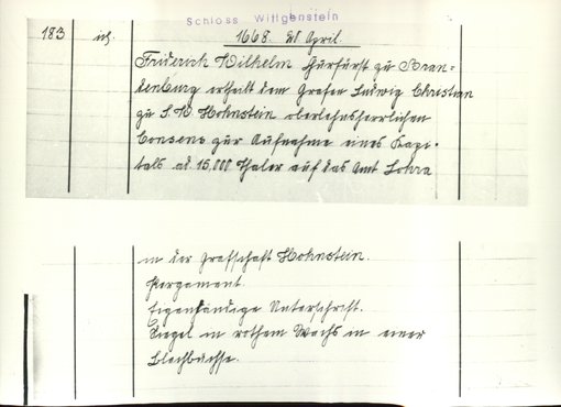Benutzungsort | Fürstliches Archiv zu Sayn-Wittgenstein-Hohenstein | |||||||