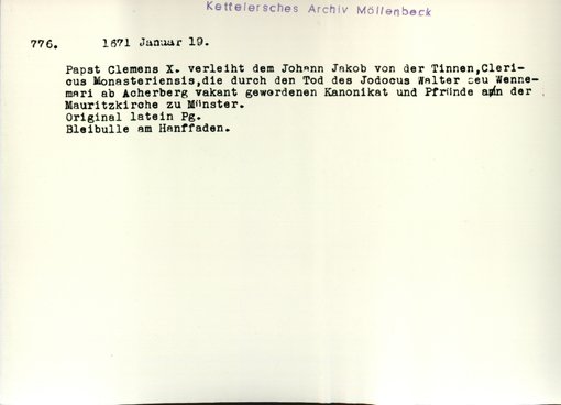 | Bestand | Möllenbeck, Haus, Urkunden | alle Regesten |