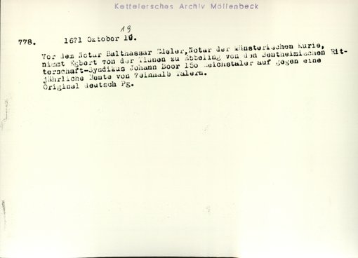 | Bestand | Möllenbeck, Haus, Urkunden | alle Regesten |