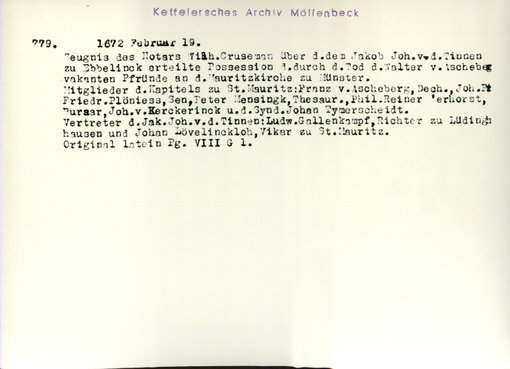 | Bestand | Möllenbeck, Haus, Urkunden | alle Regesten |