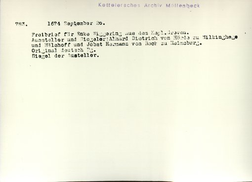 | Bestand | Möllenbeck, Haus, Urkunden | alle Regesten |