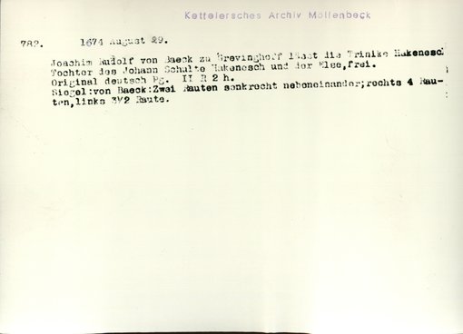 | Bestand | Möllenbeck, Haus, Urkunden | alle Regesten |