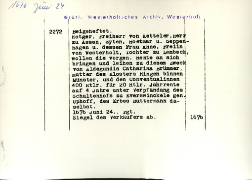 | Bestand | Westerholt-Westerholt, Urkunden | alle Regesten |