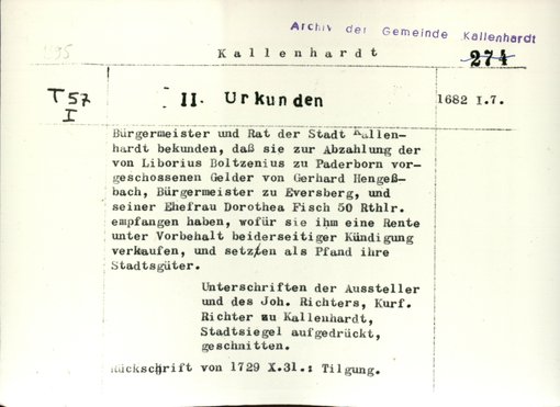 | Bestand | Kallenhardt, Stadt, Urkunden | alle Regesten |