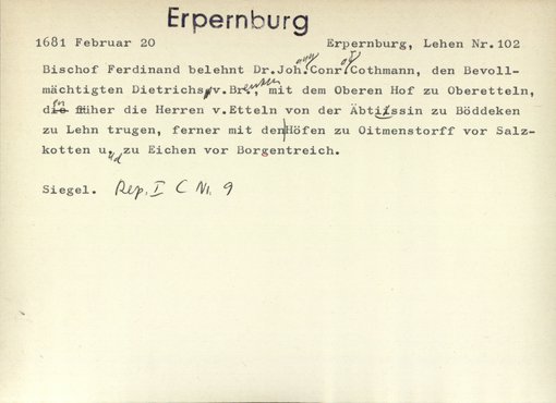| Bestand | Lehen, Urkunden | alle Regesten |