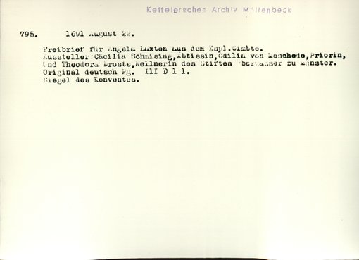 | Bestand | Möllenbeck, Haus, Urkunden | alle Regesten |