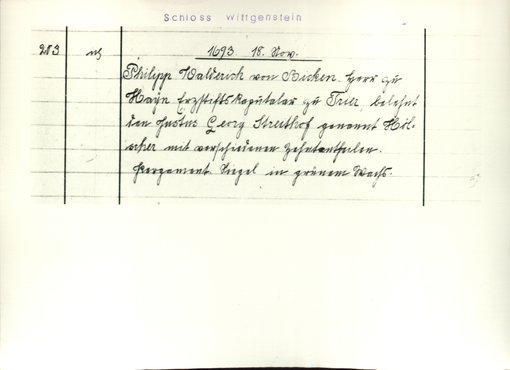 Benutzungsort | Fürstliches Archiv zu Sayn-Wittgenstein-Hohenstein | |||||||