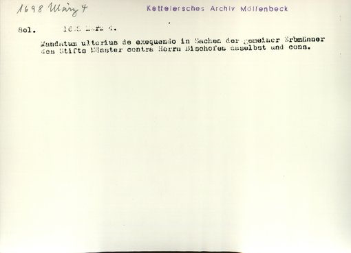 | Bestand | Möllenbeck, Haus, Urkunden | alle Regesten |