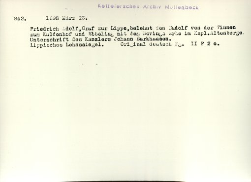 | Bestand | Möllenbeck, Haus, Urkunden | alle Regesten |