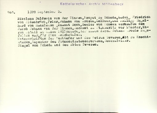 | Bestand | Möllenbeck, Haus, Urkunden | alle Regesten |