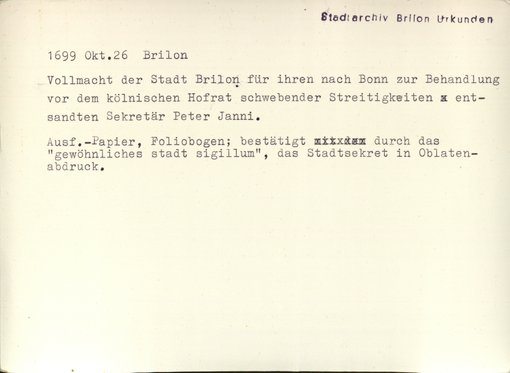 | Benutzungsort | Stadtarchiv Brilon | |||||||