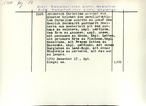 | Bestand | Westerholt-Westerholt, Urkunden | alle Regesten |