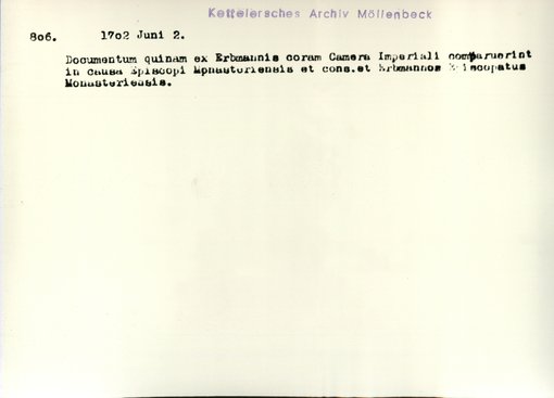 | Bestand | Möllenbeck, Haus, Urkunden | alle Regesten |