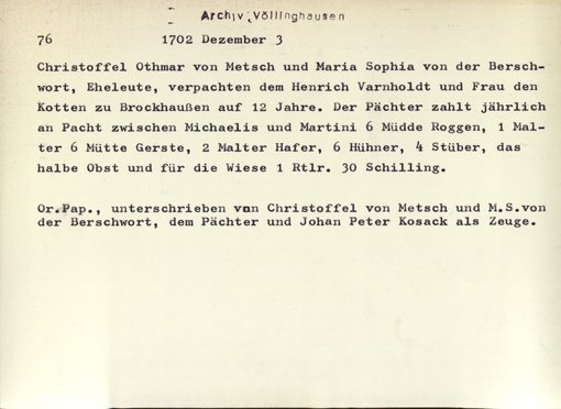 | Bestand | Gutsarchiv, Urkunden | alle Regesten |
