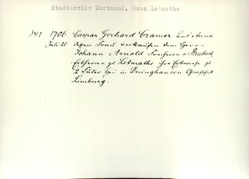 | Bestand | Letmathe, Haus, Urkunden | alle Regesten |