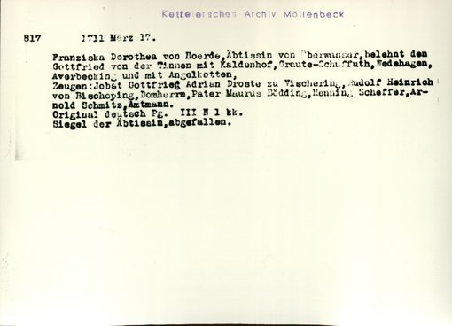 | Bestand | Möllenbeck, Haus, Urkunden | alle Regesten |