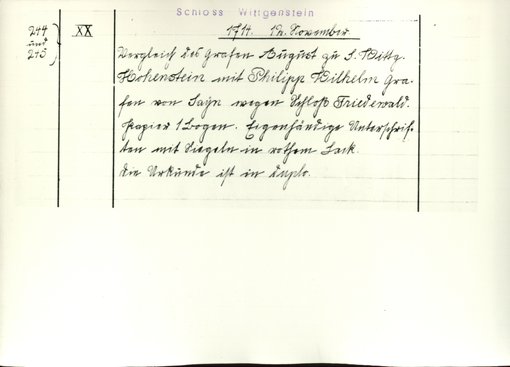 Benutzungsort | Fürstliches Archiv zu Sayn-Wittgenstein-Hohenstein | |||||||