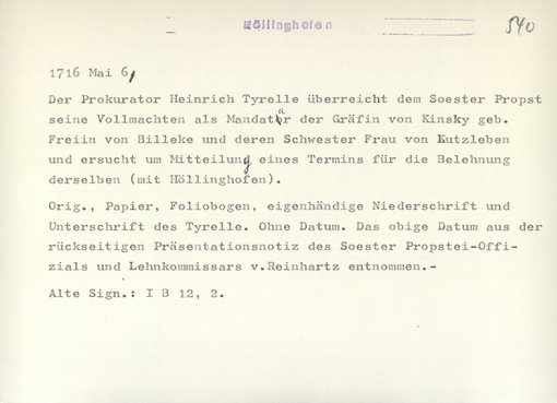 | Bestand | Höllinghofen, Urkunden | alle Regesten |