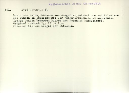 | Bestand | Möllenbeck, Haus, Urkunden | alle Regesten |