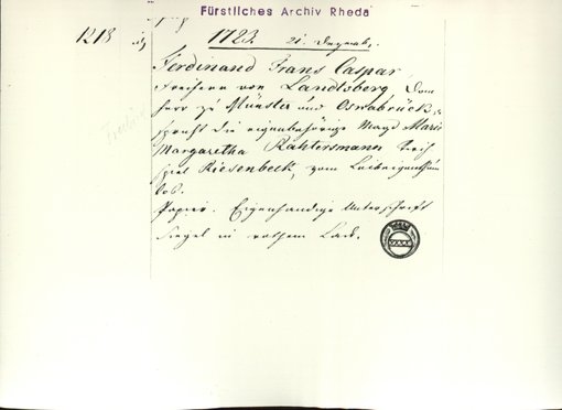 | Bestand | Rheda, Urkunden | alle Regesten |