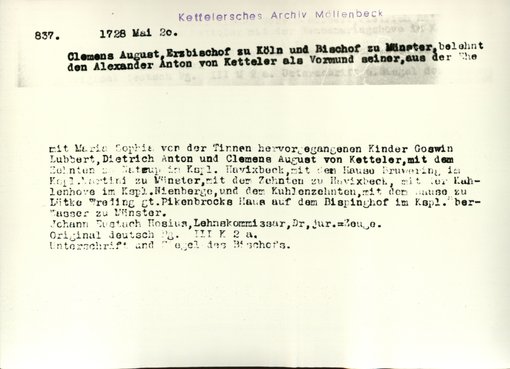 | Bestand | Möllenbeck, Haus, Urkunden | alle Regesten |