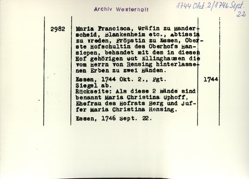 | Bestand | Westerholt-Westerholt, Urkunden | alle Regesten |