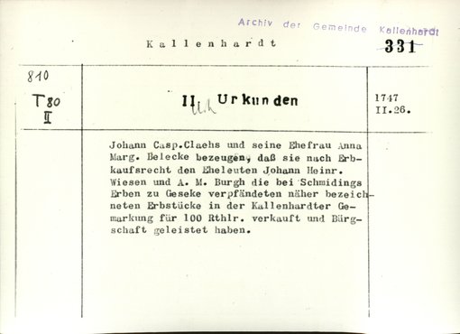 | Bestand | Kallenhardt, Stadt, Urkunden | alle Regesten |