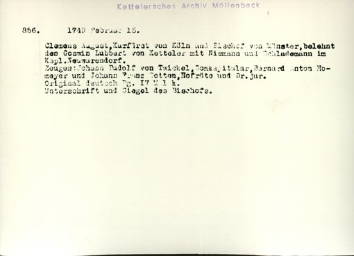| Bestand | Möllenbeck, Haus, Urkunden | alle Regesten |