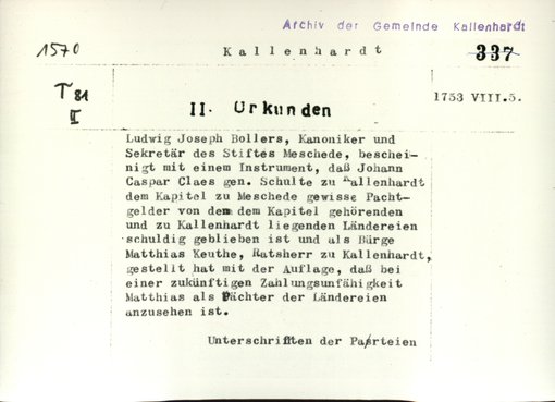 | Bestand | Kallenhardt, Stadt, Urkunden | alle Regesten |
