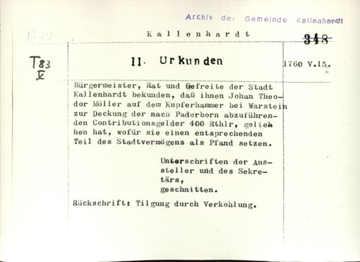 | Bestand | Kallenhardt, Stadt, Urkunden | alle Regesten |