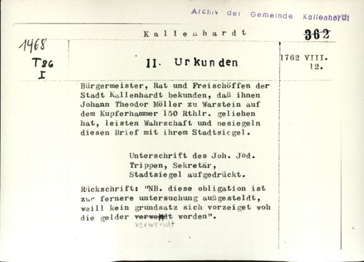 | Bestand | Kallenhardt, Stadt, Urkunden | alle Regesten |