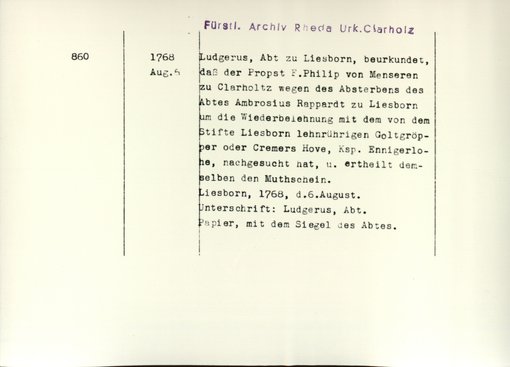 | Bestand | Clarholz, Stift, Urkunden | alle Regesten |