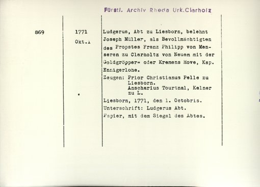 | Bestand | Clarholz, Stift, Urkunden | alle Regesten |