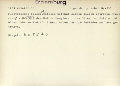 | Signatur | Lehen 145 | |||||||