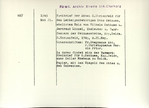 | Bestand | Clarholz, Stift, Urkunden | alle Regesten |