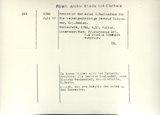 | Bestand | Clarholz, Stift, Urkunden | alle Regesten |