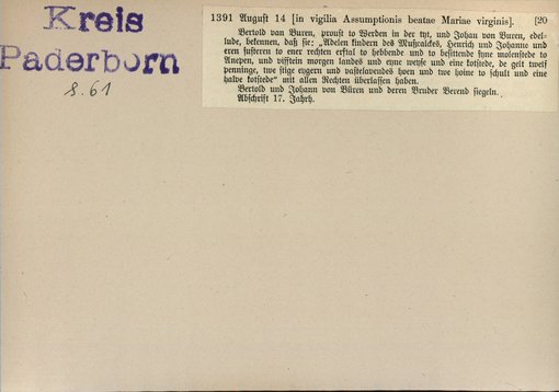 | Bestand | Bd. 3, Heft 2: Kreis Paderborn | alle Regesten |