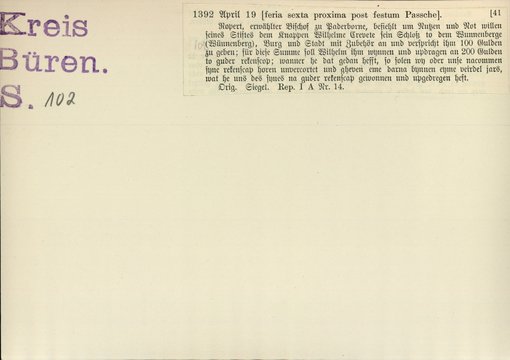| Bestand | Bd. 3, Heft 1: Kreis Büren | alle Regesten |