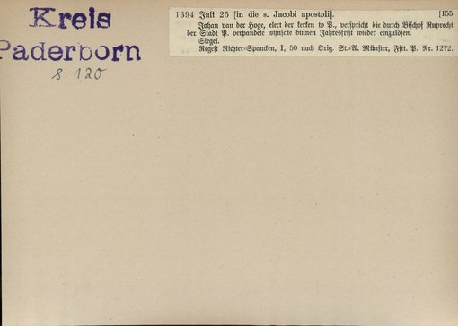 | Bestand | Bd. 3, Heft 2: Kreis Paderborn | alle Regesten |