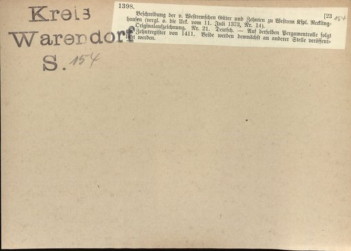 | Bestand | Bd. 2, Heft 2: Kreis Warendorf | alle Regesten |
